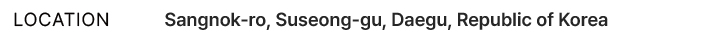 LOCATION Sangnok-ro, Suseong-gu, Daegu, Republic of Korea